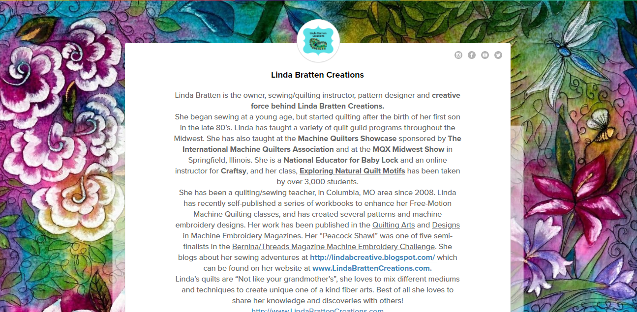 I am a National Educator for Baby Lock and I am an instructor on Craftsy.