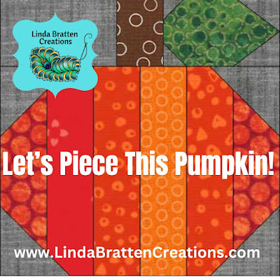 In tonight's live in the Linda Bratten Creations Facebook page we will be creating the Pieced Pumpkin block using a foundation paper piecing (FPP) technique. This block will finish 6" x 6" and is a great block to create with extra scrap fabric in your studio. If you do not have scraps, 2 1/2" strips that are at least 6" long should get you started to create this block.